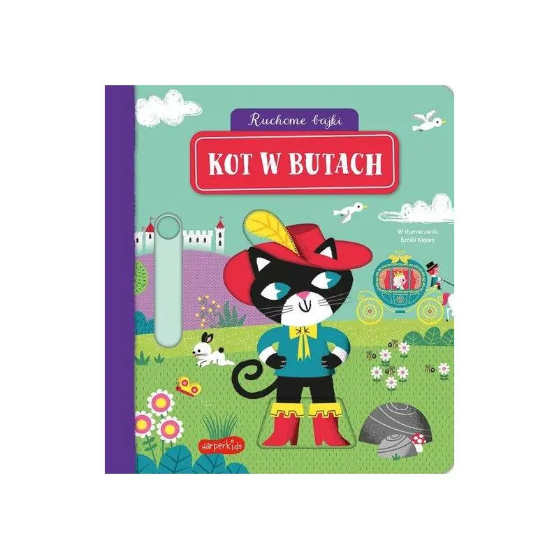 Ruchome bajki to nowa seria książeczek w ofercie HarperKids przeznaczona dla najmłodszych czytelników. Znane wszystkim postacie z bajek w przekładzie Emilii Kiereś zapraszają do magicznego świata, ruchome elementy na każdej stronie sprawią, że jeszcze łatwiej mały czytelnik wyobrazi sobie bohaterów. W serii ruchomych bajek został wydany Kot w butach. Opowieść o biednym chłopcu, który w spadku po tacie dostał kota. Kot był niesamowity, ponieważ umiał mówić i postanowił pomóc swojemu właścicielowi w zdobyciu majątku. Założył buty, czapkę i codziennie odwiedzał markiza w zamku dając mu w darze od chłopca upolowane króliki czy inne zwierzątka. Pewnego dnia gdy markiz wraz z córką przejeżdżał obok rzeki, zobaczył, na brzegu kota w butach, który krzyczał, że jego pan się topi. Tak podstępem młody panicz został uratowany i poznał księżniczkę. Resztę dowiecie się z książeczki. Ruchome bajki to książeczki dla dzieci i rodziców do wspólnego oglądania i czytania. Ruchome elementy, doskonale wspierają rozwój maluchów i rozwijają sprawność manualną. Piękne kolorowe ilustracje sprawiają, że dzieci z przyjemnością odkrywają świat wokół siebie oraz ćwiczą skupianie się przy dłuższym tekście.