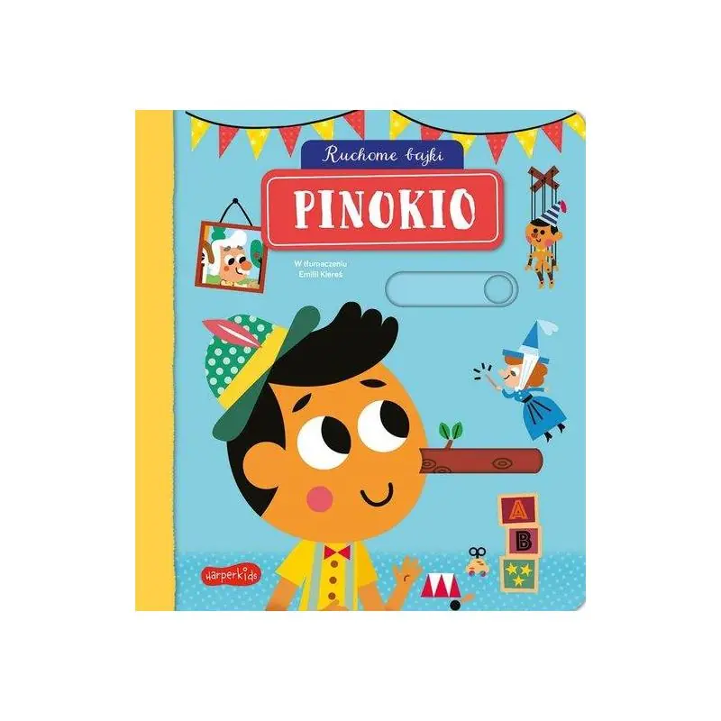 Ruchome bajki to nowa seria książeczek w ofercie HarperKids przeznaczona dla najmłodszych czytelników. Znane wszystkim postacie z bajek w przekładzie Emilii Kiereś zapraszają do magicznego świata, ruchome elementy na każdej stronie sprawią, że jeszcze łatwiej mały czytelnik wyobrazi sobie świat bajek. Serię ruchomych bajek otwiera znany wszystkim Pinokio. Mała, drewniana lalka wystrugana przez stolarza Gepetto pewnego dnia ożyła. Chłopczyk został nazwany Pinokio i okazało się, że miał niesamowitą cechę, gdy kłamał jego nos wydłużał się. Ruchome bajki to książeczki dla dzieci i rodziców do wspólnego oglądania i czytania. Ruchome elementy, doskonale wspierają rozwój maluchów i rozwijają sprawność manualną. Piękne kolorowe ilustracje sprawiają, że dzieci z przyjemnością odkrywają świat wokół siebie oraz ćwiczą skupianie się przy dłuższym tekście.