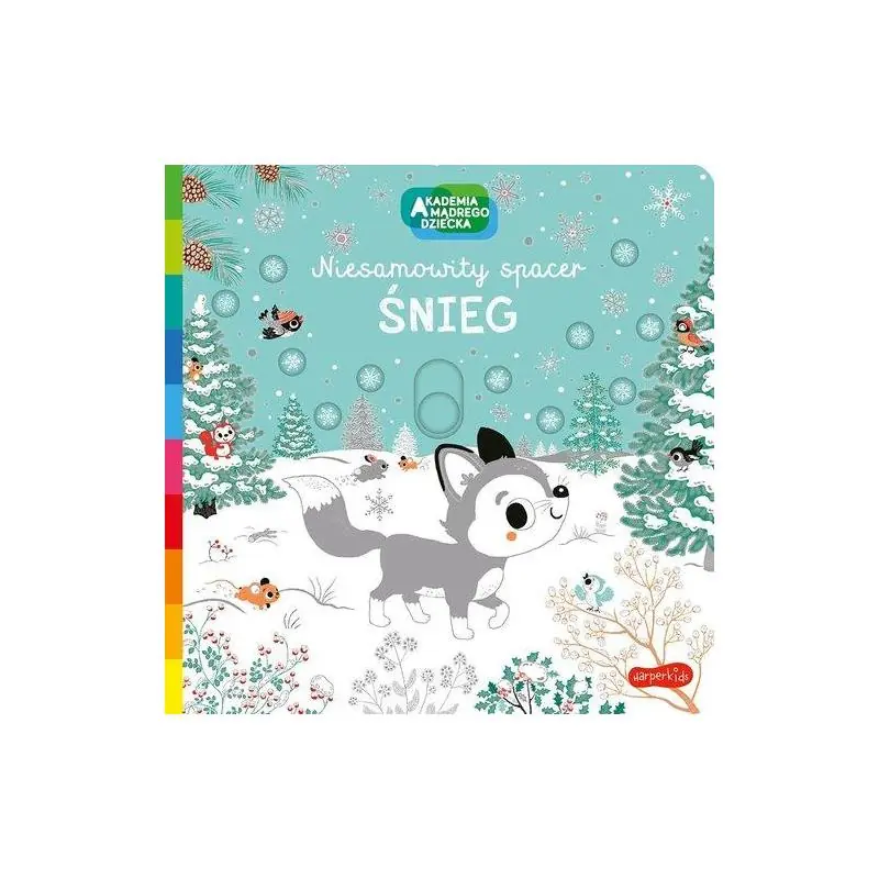 Śnieg z serii Niesamowity spacer Akademii Mądrego Dziecka to książeczka dla najmłodszych z ruchomymi elementami oraz srebrnymi tłoczeniami. Kontrastowa kolorystyka oraz prosta forma ułatwiają zapamiętywanie poszczególnych słówek, poprzez skojarzenie ich z otaczającą dzieci rzeczywistością. Grube, solidne strony zapewnią wytrzymałość oraz długie użytkowanie, wspomagając rozwój manualny małych rączek. W książeczce Śnieg nasz czytelnik poznaje małe liski, które cały dzień harcują w lesie, po śniegu zaczepiając inne zwierzątka. Razem z nimi szaleją króliczki, gronostaje i małe wilczki. Tylko ptaszki wolą schronić się w ciepłej dziupli. Wieczorem zmęczone zabawą zwierzątka grzecznie zasypiają wtulone w swoje mamy. W serii książeczek „Akademia mądrego dziecka. Niesamowity spacer” warto zwrócić uwagę na ruchome elementy, odkrywające przed maluchami odpowiedzi na umieszczone w książce pytania oraz zmieniające wygląd poszczególnych ilustracji. Taka forma łączy zabawę z nauką i intryguje dzieciaki, zachęcając je do samodzielnego sięgania po lekturę. Książeczka edukacyjna świetnie sprawdzi się podczas poznawania prostych słów, nazw przedmiotów i ich przeznaczenia.