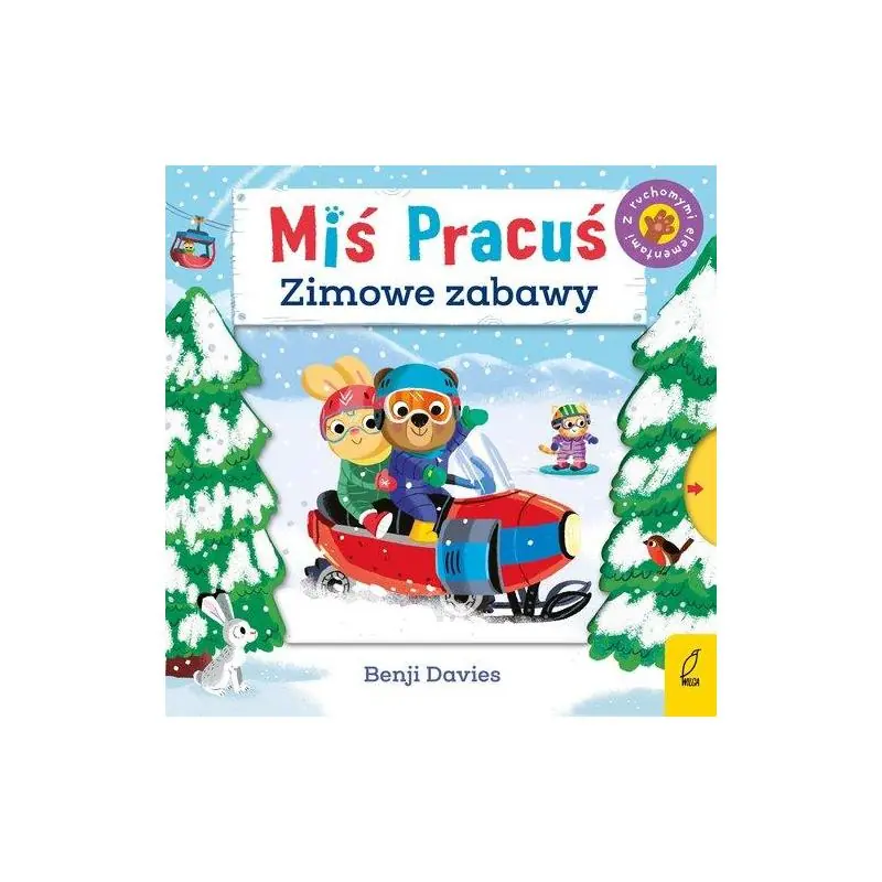 Poznawajcie świat z Misiem Pracusiem! Czytając wesołe książeczki i przesuwając ruchome elementy, mały czytelnik może poznać różne zawody lub miejsca. Miś Pracuś. Zimowe zabawy maluchy będą miały okazję wybrać się w góry z ulubionym bohaterem, gdzie nie tylko zjadą, ale również skoczą na nartach, a także zjedzą przepyszną kolację w góralskiej karczmie. Miś Pracuś to seria grubostronicowych książeczek dla najmłodszych z ruchomymi elementami, które wspierają i stymulują rozwój dziecka. Prosty, rymowany i rytmiczny tekst jest łatwy do zrozumienia i zapamiętania przez maluchy. W serii Miś Pracuś znalazły się również książeczki: Zabawy na wsi, Straż pożarna, W podróży, Opiekun w ZOO, Zabawy w parku, Karetka pogotowia, Na budowie, W samolocie, W pociągu, Na boisku, W pizzerii oraz Pomocnik Mikołaja. Książeczki o Misiu Pracusiu są światowym bestsellerem, który sprzedał się w nakładzie ponad 5 milionów kopii i zostały przetłumaczone na 25 języków. Benji Davies to światowej sławy autor i ilustrator książek dla dzieci. Dlaczego warto poznać Misia Pracusia? Miś Pracuś to przeuroczy bohater, który skradnie serce każdego Malucha. Książeczki napisane są prostym i rymowanym tekstem, więc dziecko nie będzie miało problemu z zapamiętaniem go. Ruchome elementy wspierają rozwój i motorykę małego czytelnika. Każda książka to inna przygoda dla Misia i dziecka. Książeczka o zaokrąglonych rogach, wykonana z wytrzymałego materiału – gwarantująca bezpieczną zabawę.