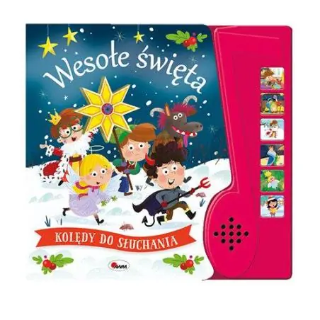 Książeczka kartonowa z PANELEM DŹWIĘKOWYM! W środku teksty tradycyjnych KOLĘD. Książka wprowadza w MAGICZNY NASTRÓJ Świąt Bożego Narodzenia. W książce znajdują się teksty tradycyjnych KOLĘD. Całość wzbogacona jest kolorowymi, wesołymi ILUSTRACJAMI, które przypadną do gustu każdemu małemu czytelnikowi. Książkę wyposażono w PANEL DŹWIĘKOWY. Po naciśnięciu przycisków maluszek usłyszy KOLĘDY śpiewane przez dzieci. Książka: • wprowadza w nastrój ŚWIĄT BOŻEGO NARODZENIA • zapoznaje z SZEŚCIOMA ŚWIĄTECZNYMI KOLĘDAMI • wspiera WSZECHSTRONNY ROZWÓJ dziecka • rozwija WYOBRAŹNIĘ • wzbogaca SŁOWNICTWO Kolędy do słuchania To seria książek zawierających tradycyjne polskie kolędy. Dodatkowym atutem jest PANEL DŹWIĘKOWY.