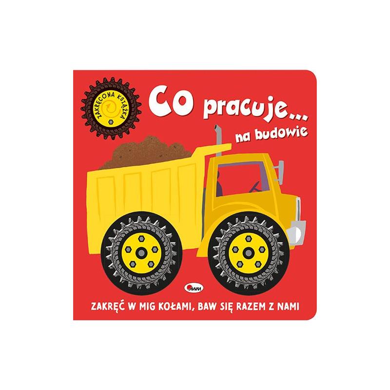 Książka zapoznaje małych czytelników z POJAZDAMI BUDOWLANYMI. Dzieci znajdą w niej proste i krótkie RYMOWANKI o koparce czy betoniarce. Wyróżnikiem publikacji są kręcące się KÓŁKA, dzięki którym dziecko może AKTYWNIE uczestniczyć w czytaniu. Piękne, kolorowe ILUSTRACJE pomogą przenieść się na PLAC BUDOWY.