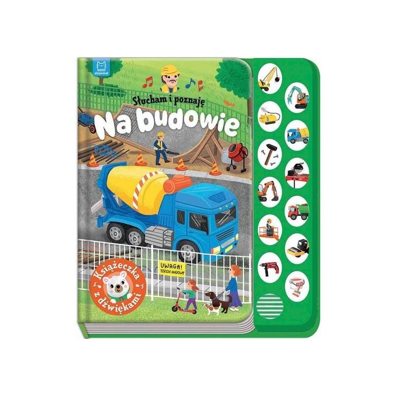 Książka dla małych majsterkowiczów i miłośników motoryzacji, a w niej bogate i staranne ilustracje oraz wierszowane historyjki o pojazdach, przedmiotach i urządzeniach na budowie. Dodatkową niespodzianką dla dzieci są dołączone dźwięki. Posłuchaj, jak brzmią: auto z kulą do wyburzania, nożyce do cięcia betonu, stacjonarna pompa do betonu, betoniarka, wbijający gwoździe młotek, piła tarczowa, koparka, wywrotka, podnośnik, walec, wiertarka i malujący pędzel. Naciśnij przycisk z obrazkiem, aby włączyć dźwięk. Chcesz wyłączyć? Naciśnij przycisk jeszcze raz. Zabawa z książką rozwija zmysły malucha. Wesołe i łatwe do zapamiętania wierszyki rozwijają pamięć i percepcję dziecka, które wzbogaca również swoją wiedzę o odgłosy wydawane przez pokazane w książce pojazdy i przedmioty. Twarda oprawa i kartonowe karty sprawiają, że książka jest trwała i bezpieczna, a format odpowiedni dla małego dziecka. Do czytania, słuchania i oglądania!