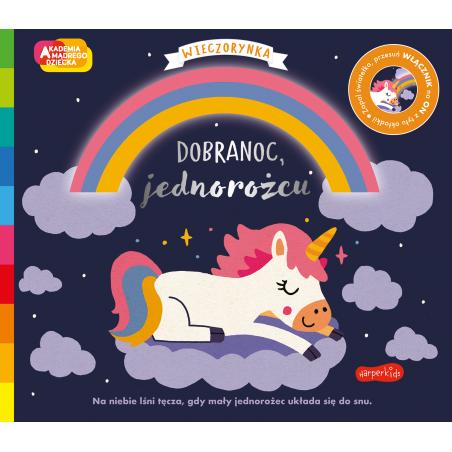 Książeczka Dobranoc jednorożcu, opowiada o małym jednorożcu, który nie może zasnąć, ponieważ zgubił swoją ulubioną przytulankę. Odwiedza po kolei swoich przyjaciół by sprawdzić czy któryś z nich nie ma przypadkiem pluszaka. Kolorowa tęcza oświetla mu drogę do innych zwierzątek: narwala, lamy, flaminga, dinozaura i sówek. W końcu