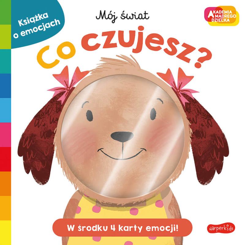 Książeczka Co czujesz Akademii Mądrego Dziecka to kolejna pozycja z serii Mój Świat. Na kolorowych, kartonowych stronach, mały czytelnik dowie się, co to są emocje, nauczy się je rozpoznawać oraz nazywać. Do książeczki dołączone są 4 karty - buźki z emocjami i uczuciami: radość, smutek, złość i podekscytowanie. Nasz bohater miś wraz