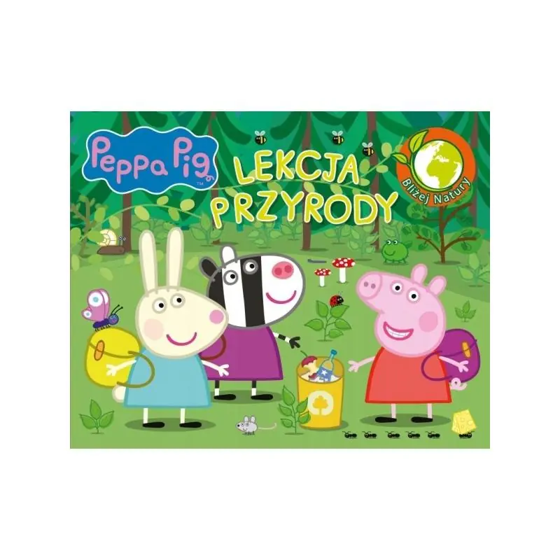 Peppa i jej przyjaciele sprzątają leśną polanę i sadzą drzewa. Dowiadują się przy tym, jakie zwierzęta trzeba chronić. Dlaczego warto troszczyć się o przyrodę? Jak mogą to robić mali i duzi? Seria Bliżej Natury, której bohaterami są ulubione postaci z bajek, w przystępny sposób zaznajamia małych czytelników z tak ważnymi aspektami dbania o środowisko jak recykling czy ochrona rzadkich gatunków zwierząt.