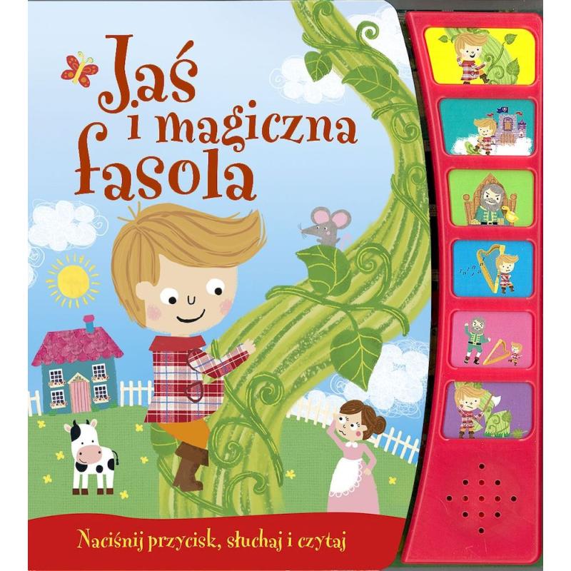 Przenieś się do krainy bajek. Naciskaj kolejno sześć dźwiękowych przycisków i słuchaj ekscytującej opowieści o Jasiu, fasolowych ziarnkach i olbrzymie. Bajkę czyta Robert Michalak W tej serii m.in.: Złotowłosa i trzy misie, Czerwony Kapturek, Kopciuszek, Królewna Śnieżka, Trzy małe świnki, Śpiąca Królewna, Piękna i Bestia, Jaś i Małgosia, Brzydkie kaczątko, Mała syrenka, Roszpunka.