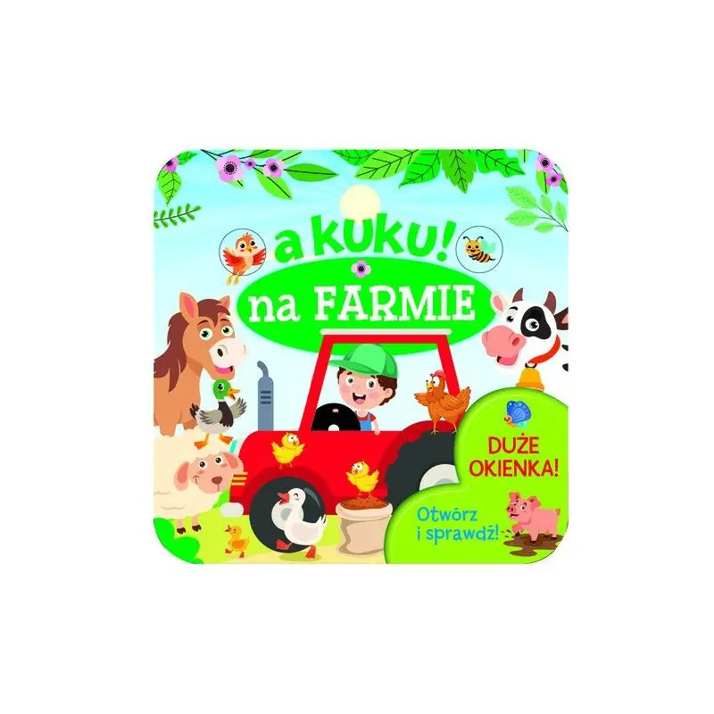 Zapraszamy na farmę pełną niespodzianek! Uchyl okienka i odkryj, kto chowa się w stodole, kto mieszka w kurniku, a kto pluska się w stawie. Kolorowa książeczka z okienkami to wspaniała zabawa i nauka w jednym!