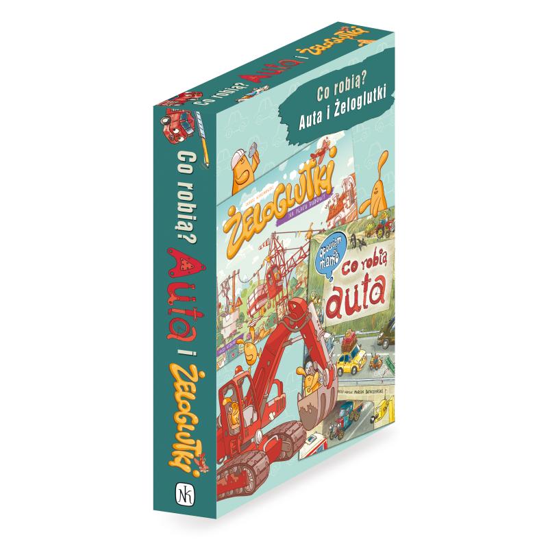 Dwie fantastyczne książki dla najmłodszych: "Opowiem ci, mamo, co robią auta" Artura Nowickiego i Marcina Brykczyńskiego oraz "Żeloglutki na placu budowy" Janusza Wyrzykowskiego. Zestaw w eleganckim pudełku, idealny na prezent!
