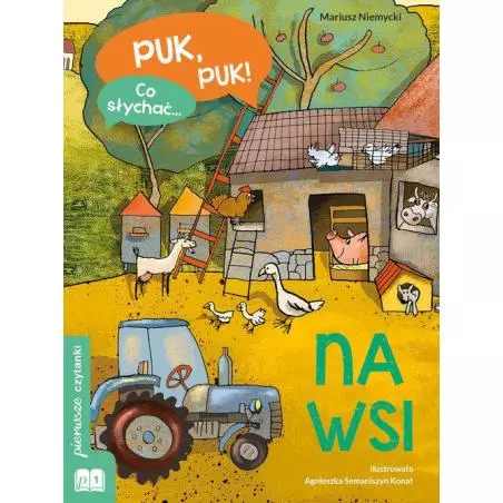 Na wsi wiele się dzieje i nigdy nie jest cicho. Słychać pianie koguta, gdakanie kur, gęganie gęsi, muczenie krowy, chrumkanie świnek. Ale to nie wszystko! Co jeszcze słychać na wsi? Przeczytaj tę książkę, a dowiesz się na pewno! Aby dziecko mogło opanować i doskonalić trudną umiejętność czytania, Wydawnictwo Skrzat proponuje nową kolekcję „Pierwsze Czytanki”. Należą do niej m.in. książeczki z serii „Puk, Puk! Co Słychać…”. Zostały one zakwalifikowane do poziomu pierwszego, co oznacza, że są przeznaczone dla dzieci, które dopiero zaczynają przygodę z czytaniem. Każda historia z tej serii zawiera trudniejszy tekst wierszowany oraz pojedyncze, proste wyrazy umieszczone w dymkach. Tekst poetycki czyta ktoś dorosły, a słowa w dymkach – dziecko. Taka lektura może być wspaniałą zabawą dla dwojga. Książeczki z serii „Puk, Puk! Co Słychać…” nie są przypisane do konkretnego wieku. Rodzic sam zdecyduje, czy jego dziecko poradzi już sobie z zaproponowanym tekstem. Kolorowe ilustracje i ciekawa opowieść na pewno zainteresują najmłodszych oraz pomogą im w opanowaniu trudnej sztuki czytania. Dodatkowym atutem książek z tej serii jest zamieszczony na końcu każdej z nich słowniczek trudniejszych pojęć pojawiających się w konkretnej opowieści. SERIA: „Na budowie”, „Na pogotowiu”, „W straży pożarnej”