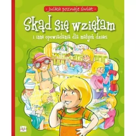Wydanie 2012r. Oprawa broszurowa. Strony 48. Format 22,5x27,0cm. „Skąd się wzięłam i inne opowiadania dla małych dzieci. Julka poznaje świat” to książka dla 2-, 3- i 4-latków. Jej bohaterka powoli przestaje być maluszkiem i staje się przedszkolakiem. Uczy się korzystać z WC, dzielić zabawkami, poznaje nowe smaki i otaczający ją świat.