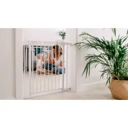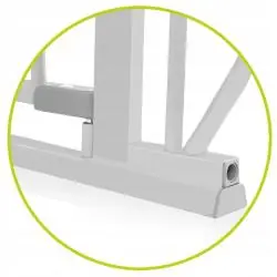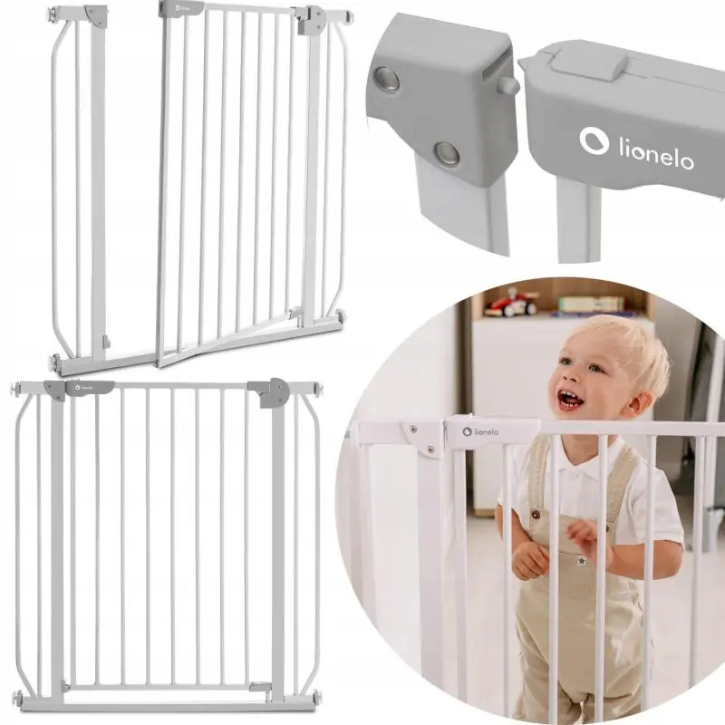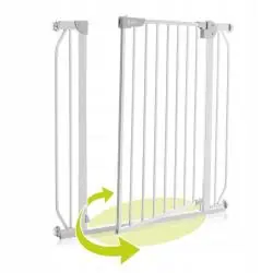 Szeroki zakres od 75 do 85 cm pasuje do większości standardowych framug. Specjalna nakładka umożliwia przedłużenie barierki aż do 105 cm. Po dołożeniu dodatkowego rozszerzenia bramkę można stosować również w celu zabezpieczenia schodów.