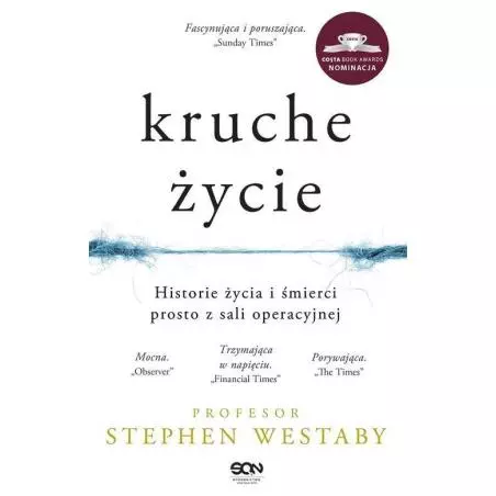 To nie jest książka dla ludzi o słabym sercu Niemowlę, które już w pierwszych miesiącach życia przeszło kilkanaście zawałów. Kobieta cierpiąca na zespół zamknięcia – w pełni świadoma, uwięziona we własnym ciele, niezdolna choćby poruszyć palcem. Wreszcie pionierska operacja wszczepienia sztucznego serca, w wyniku której powstał „człowiek na baterie”. Kruche życie to zdumiewająca i zapierająca dech opowieść wybitnego kardiochirurga, którego ścieżkę zawodową znaczyły geniusz i brawura. Stephen Westaby dzieli się najciekawszymi i najbardziej wzruszającymi historiami z sali operacyjnej, z jakimi dane mu było się zetknąć w czasie trzydziestopięcioletniej kariery. Uratował w tym czasie setki osób, którym szans nie dawał absolutnie nikt. Oto przewodnik po fascynującym i pełnym tragizmu świecie kardiochirurgii. Pozwala poczuć, jak to jest trzymać w ręku ludzkie życie. *** Profesor Westaby, którego poznałem osobiście, jest wizjonerem oraz lekarzem walczącym o pacjenta do ostatniej chwili. Jego książka to zapis niecodziennego doświadczenia życiowego, opis wyjątkowego, namacalnego obcowania z kruchością życia. Autor przypomina swoją postawą i działalnością nieocenionego prof. Zbigniewa Religę, dlatego ta opowieść jest wiarygodna i zasługuje na upowszechnienie. prof. Marian Zembala kardiochirurg i transplantolog, który operował wraz ze Zbigniewem Religą W walce o życie chciałoby się mieć u boku kogoś takiego jak Westaby – faceta, który dyrektorów medycznych porównuje do Stasi, a do boju rusza z okrzykiem: „Chrzanić protokół!”. książka roku według „The Guardian” Westaby uosabia wszystko to, czego spodziewalibyśmy się po genialnym chirurgu: jest pewny swego, zaangażowany, pełen pasji i uparty. Jego książkę, irytująco dobrze napisaną jak na kogoś, kto dotąd miał na koncie jedynie artykuły naukowe i podręczniki, połyka się niczym pierwszorzędny thriller, trup ściele się tu gęściej niż w kryminałach. Każdy rozdział czyta się z zapartym tchem, aby zobaczyć, czy kolejny – zdawałoby się – pozbawiony szans pacjent przeżyje. „The Times”