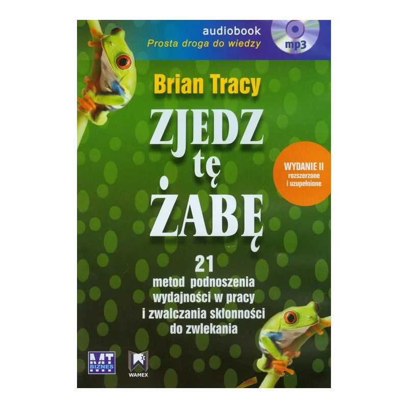 Zjedz tę żabę to książka dla ludzi biznesu. Ta przekonująca metafora, „ogromna żaba” czekająca na zjedzenie, to twoje największe, najważniejsze zadanie, z którego realizacją będziesz prawdopodobnie zwlekał, jeśli nie zajmiesz się nim od razu. Jest ona również tym zadaniem, które w danym momencie może mieć najkorzystniejszy wpływ na