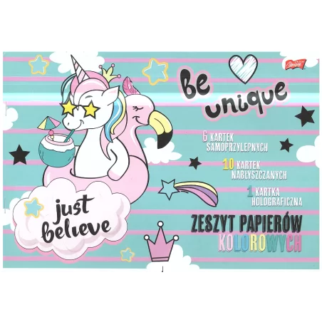 ZESZYT PAPIERÓW KOLOROWYCH A4 17 KARTEK UNICORN - St. Majewski