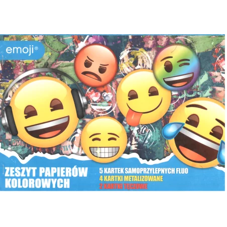 • zeszyt papierów kolorowych zawiera 5 kartek samoprzylepnych fluo, 4 kartkimetalizwane oraz dwie kartki tęczowe