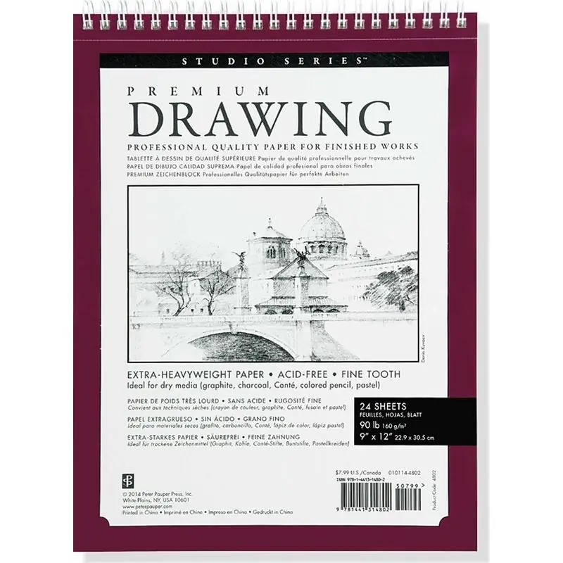 Profesjonalny szkicownik Peter Pauper Press to wysokiej jakości artykuł papierniczy, idealny dla artystów, studentów kierunków artystycznych oraz osób rozwijających kreatywność. Papier o gramaturze 160 g/m² doskonale sprawdza się w rysunku ołówkiem, tuszem, węglem drzewnym, pastelami oraz kredą. Spiralne oprawienie ułatwia przewracanie stron, a mikroperforacja pozwala na ich łatwe wyrywanie.