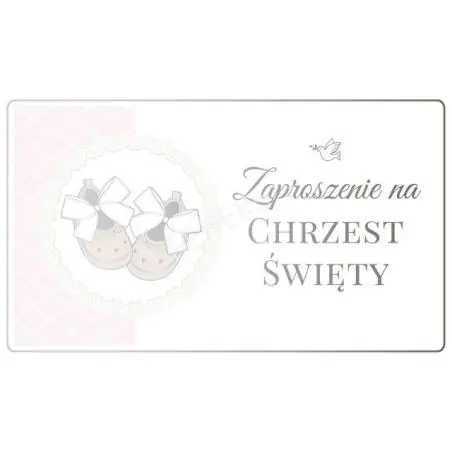 Ekskluzywne zaproszenia na chrzest wykonane na grubym papierze złoconym folią z dołączonymi kopertami oraz dodatkowymi karteczkami zapraszającymi na uroczyste przyjęcie.