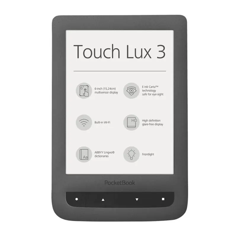 PocketBook Touch lux 3 został wyposażony w ekran najnowszej technologii, E-Ink Carta. Dzięki tej technologii czytnik oferuje wyższy kontrast ekranu oraz zapewnia większy komfort optyczny, który doskonale współgra z wysoką rozdzielczością ekranu e-ink Carta (1024 x 758). Wszystkie wspomniane cechy wpływają na czytelniejszy ekran, dzięki temu zagwarantują Ci wysoki jakość czytania. Dodatkowo producenci ekranu E-Ink Carta zapewniają, że jest on trwalszy od swoich poprzedników.