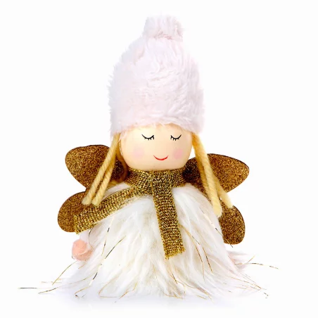 - aniołek w puchatej czapce i sukience ze złotymi nitkami