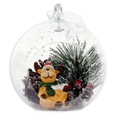 - w środku figurka renifera oraz imitacja szyszki i gałązki jodły