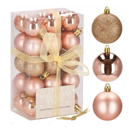 Zestaw 35 bombek różnej wielkości, zapakowany w przezroczyste opakowanie.