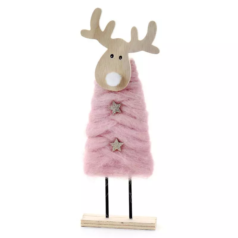 - renifer z włochatym tułowiem i brokatowymi gwiazdami z przodu