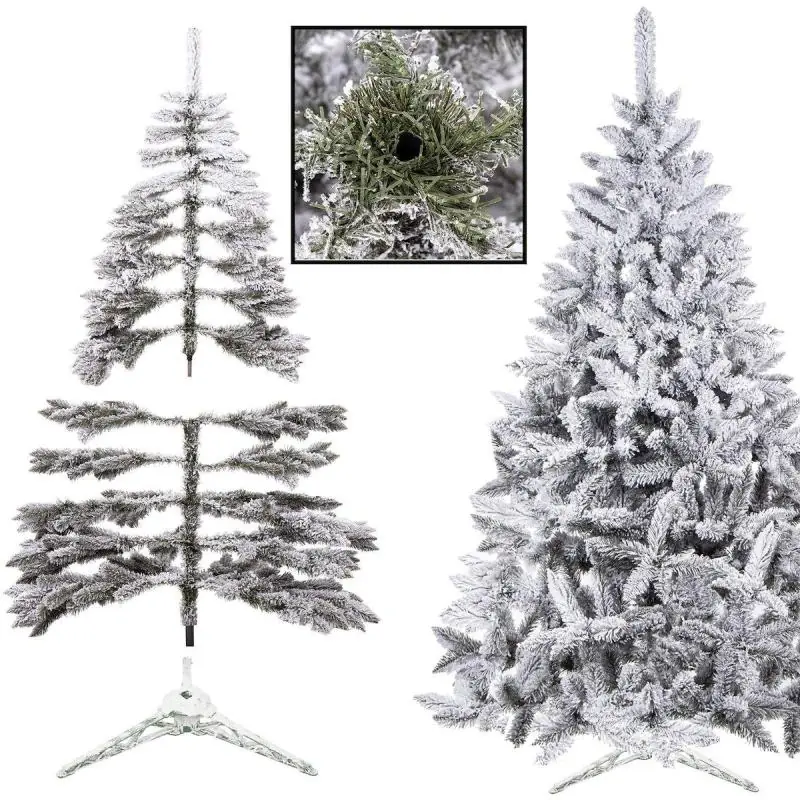 Czy choinka jest ośnieżona? Tak, gałązki są pokryte efektownym śnieżeniem, które nadaje drzewku zimowy wygląd.