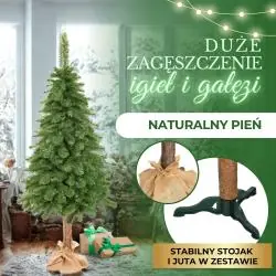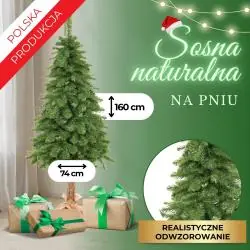 Choinka sztuczna Sosna na Pniu 160 cm Springos to niezwykle efektowne drzewko świąteczne stworzone z myślą o osobach, które pragną połączenia naturalnego wyglądu z elegancką formą dekoracyjną. Osadzona na prawdziwym pniu, o gęstej i zróżnicowanej strukturze gałązek, zachwyca realistycznym wyglądem i nadaje wnętrzu wyjątkowy, bożonarodzeniowy klimat.