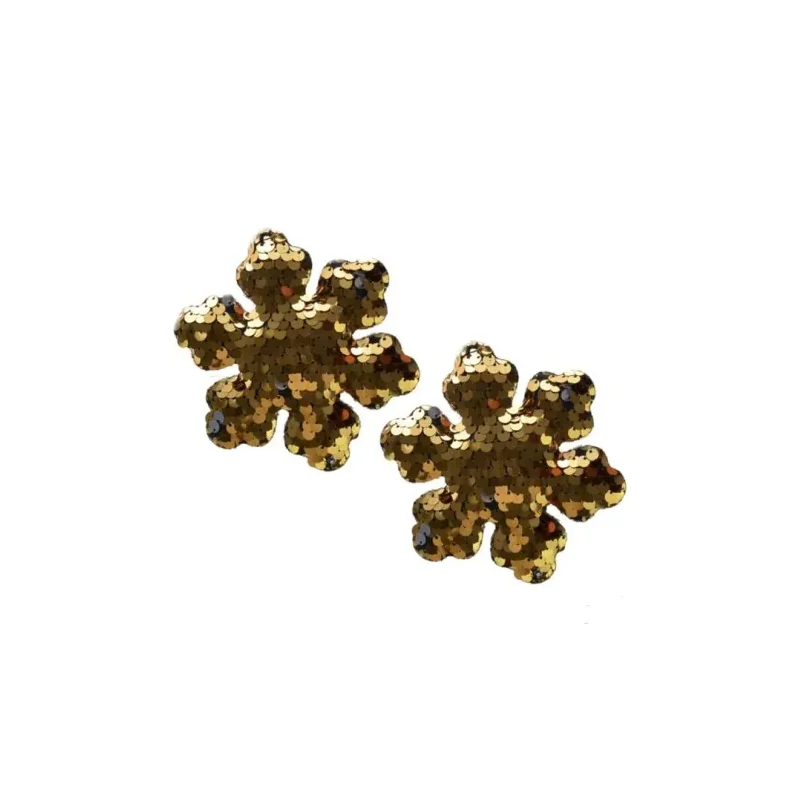 OZDOBY CHOINKOWE "CEKINOWE ŚNIEŻYNKI" ZŁOTE ARPEX to eleganckie i efektowne dekoracje, które dodają blasku każdej choince. Wykonane z lekkiego materiału, ozdobione cekinami, idealnie odbijają światło, tworząc wyjątkowy świąteczny nastrój. Zestaw zawiera 2 sztuki, każda o