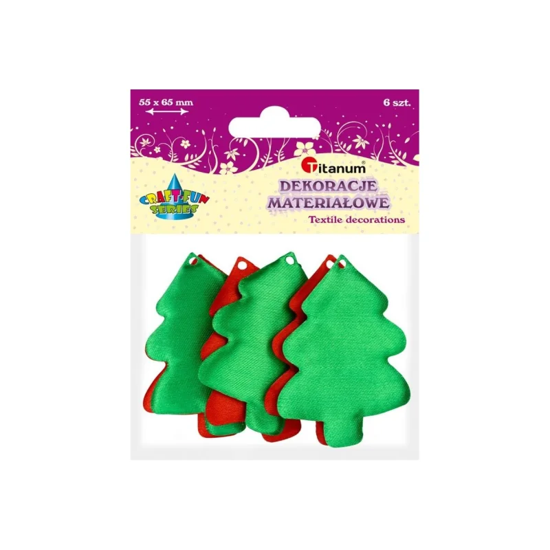 Choinki materiałowe dekoracje 55x65 mm – 6 szt. to praktyczny zestaw ozdób, które ułatwiają tworzenie świątecznych aranżacji. Dzięki uniwersalnemu motywowi i solidnemu wykonaniu świetnie sprawdzą się w dekoracjach domowych oraz projektach kreatywnych.