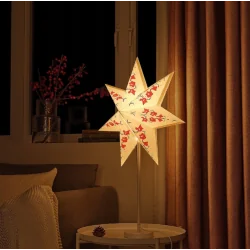 Klosz lampy gwiazda Amarylis można zawiesić na lampie wiszącej, nad stołem, w oknie lub jako samodzielną dekorację świetlną. Tworzy przytulną atmosferę w salonie, sypialni czy pokoju dziecięcym i doskonale komponuje się z innymi świątecznymi dekoracjami.