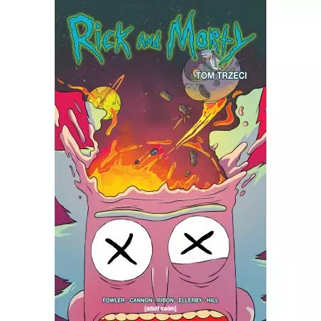 Rick i Morty to humorystyczna seria komiksów science fiction oparta na docenionym przez krytyków serialu telewizyjnym studia Adult Swim. Te świeżutkie jak bułki komiksy zawierają zupełnie nowe, inne od serialowych, przygody Ricka i Morty’ego. Trzeci tom to dalsze przygody szalonego i amoralnego geniusza Ricka Sancheza oraz jego wnuka Morty'ego, który wciąż ma ze wszystkim kłopoty. Bohaterowie przemierzają najdalsze zakątki czasu, przestrzeni i anatomii. W zbiorze zaprezentowano długą opowieść o uciętych głowach, galaktycznych tosterach zagłady i o niezdarnym Jerrym, który wszystko psuje (jak zwykle), a także dwie krótsze historie: jedną o przyspieszonej edukacji Morty'ego, a drugą o krwawym międzygalaktycznym sporcie. Komiks, podobnie jak serial, pełen jest nawiązań do klasycznych dzieł popkultury ze szczególnym uwzględnieniem fantastyki i horroru – od Doktora Who, Strefy Mroku, Jurassic Park i Star Trek po Incepcję, Koszmar z ulicy Wiązów czy Star Wars.
