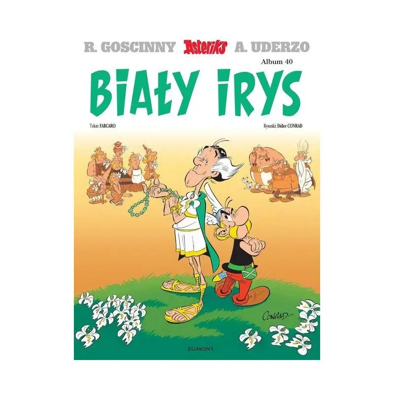 Wielki powrót Asteriksa i Obeliksa w nowej przygodzie! „Wystarczy, żeby zakwitł choć jeden irys, aby rozświetlić cały las” – czytamy w czterdziestej przygodzie Asteriksa i Obeliksa. Co się stało z naszym ulubionym galijskim wodzem Asparanoiksem i dlaczego ma taką skwaszoną minę? Czy jest związana z tytułowym Białym Irysem?... Ten bardzo specyficzny kwiat wręcz odurzał swoim zapachem. Świat rzymski, podobnie jak Galia, to terytoria, które mały kwiat zajmował na długo przed jego mieszkańcami. Niosąc dobre wieści i życzliwość, oświetlał doliny i równiny swoją mądrością, zanim ozdobił świątynie lub stał się składnikiem eliksirów. Już w październiku dowiemy się, jaką rolę irys odegrał w galijskiej wiosce i co czeka jej mieszkańców. Autorami są francuski rysownik Didier Conrad (to już jego szósty album o słynnych Galach) oraz debiutujący w tej serii francuski scenarzysta Fabrice Caro, pseud. FabCaro (autor wielu komiksów i powieści, m.in. serię „Zai, zai, zai, zai”). Seria francuskich komiksów, wymyślona w 1959 roku przez scenarzystę i mistrza humoru René Goscinny’ego oraz rysownika Alberta Uderzo, od chwili premiery w październiku 1959 roku na łamach magazynu „Pilote” podbiła serca najpierw Francuzów i Belgów, a potem – stopniowo – reszty świata, stając się jednym z fenomenów kultury popularnej XX wieku.