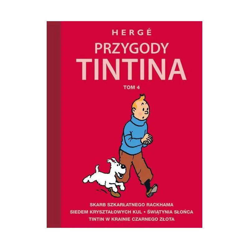 Tintin, młody reporter brukselskiej gazety i detektyw amator, zwiedza świat wraz ze swoim pieskiem Milusiem. W trakcie podróży spotykają wiele intrygujących postaci i rozwiązują liczne zagadki. Te pełne emocji oraz humoru historie pozwolą czytelnikom przeżyć niezapomniane przygody. Oto czwarty tom kolekcji składającej się z sześciu zbiorczych wydań w twardych oprawach. Zawiera on albumy: „Skarb Szkarłatnego Rackhama” (1945 r.), „Siedem kryształowych kul” (1948 r.), „Świątynia Słońca” (1949 r.), „Tintin w krainie czarnego złota” (1951 r.). Ahoj, przygodo! W pierwszej historii z tomu Tintin wyprawia się wraz z kapitanem Baryłką na poszukiwanie wraku okrętu „Jednorożec” i pirackiego skarbu. W podróży towarzyszy im nowy znajomy: nieco ekscentryczny profesor Lakmus. Czy jego wynalazek, miniaturowa łódź podwodna, okaże się pomocny w badaniu morskich głębin? I czy poszukiwaczom uda się odnaleźć drogocenne klejnoty Szkarłatnego Rackhama? Kolejne dwa albumy, „Siedem kryształowych kul” i „Świątynia Słońca”, tworzą jedną długą opowieść. Do Europy powraca ekspedycja archeologiczna, która odkryła w Peru grobowiec Inki Rascara Capaca. Wkrótce jej członkowie zaczynają po kolei zapadać w tajemniczą śpiączkę, a jedyną wskazówką są znalezione przy każdym z nich odłamki kryształu. Tintin rozpoczyna śledztwo, ale sprawy komplikują się jeszcze bardziej, gdy jeden z jego przyjaciół zostaje porwany. Aby go uratować i wyjaśnić zagadkę, reporter przemierzy wysokie i mroźne góry oraz parne lasy deszczowe. Może się jednak okazać, że w owianej legendą Świątyni Słońca zamiast odpowiedzi czeka na niego śmiertelne niebezpieczeństwo… Album zamyka historia „Tintin w krainie czarnego złota”. Kiedy wszędzie wokół niespodziewanie zaczynają wybuchać silniki rozmaitych pojazdów, Tintin domyśla się, że ktoś musi sabotować krajowe dostawy benzyny. Nasz bohater wyrusza tropem niebezpiecznego paliwa do bogatego w złoża ropy arabskiego państwa Khemed. Ku swojemu zdziwieniu w tym odległym i egzotycznym kraju spotka wielu starych znajomych – i nie wszystkie z tych spotkań będą przyjemne! Seria „Przygody Tintina” weszła już na stałe do kanonu klasyki światowego komiksu. Autorem cyklu jest belgijski artysta Georges Remi ukrywający się pod pseudonimem Hergé. Komiksy zaczęły się ukazywać w 1929 roku i od początku cieszą się uznaniem czytelników, o czym świadczy fakt, że wydrukowano ponad dwieście milionów egzemplarzy w ponad dziewięćdziesięciu językach, a Steven Spielberg wyprodukował na ich podstawie film. Hergé zaliczany jest do najpopularniejszych twórców XX wieku, a „Przygody Tintina” uznawane są za fundamentalne dzieło dla rozwoju komiksu, gdyż autor wprowadził technikę rysowniczą zwaną ligne claire, czyli „czystą linią”, którą naśladowali później liczni twórcy komiksu, zwłaszcza franko-belgijskiego.