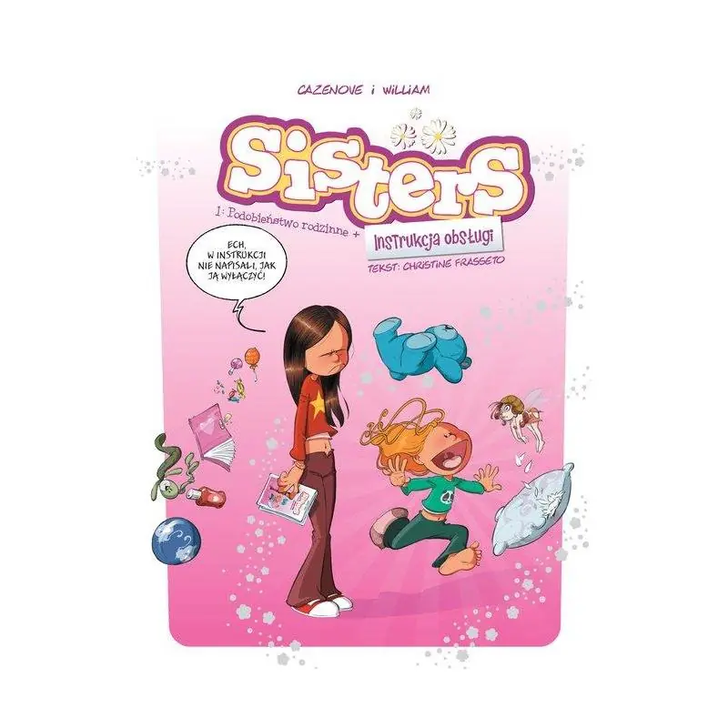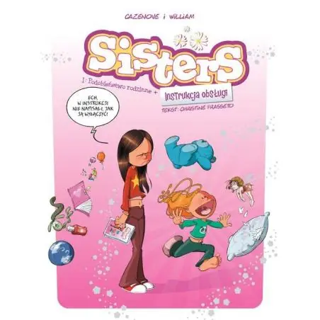 Wyjątkowy album w serii – tom pierwszy Sisters oraz instrukcja obsługi siostry! Szalony i zabawny poradnik, jak radzić sobie z młodszą sister, która nie daje ci spokoju, i jak radzić sobie ze starszą siostrą, która chce tobą rządzić; jak zdobyć koleżanki i jak postępować z chłopakami; jak w szkole i w życiu pozostać sobą; jak wybrać zwierzątko domowe; jak unikać kłopotów w Internecie i jak zmiękczać rodziców. A do tego mnóstwo śmiesznych rysunkowych gagów autorów bestsellerowych „Sisters”! Autorami cyklu są scenarzysta Christophe Cazenove (współtwórca niemal czterdziestu serii humorystycznych dla dzieci i dorosłych, w tym „Mali bogowie”, „Kasia i jej kot” czy „Zoo wymarłych zwierząt”) oraz rysownik William Maury, który oprócz „Sisters” ilustruje inną opowieść Cazenove’a – „Zombiaczek”. Tekst do „Instrukcji obsługi” napisała Christine Frasseto, autorka licznych książek dla dzieci i młodzieży.