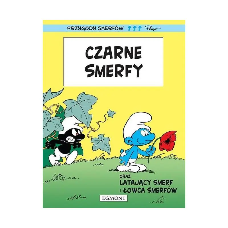 Pierwszy tom sławnej serii o przygodach uwielbianych przez dzieci niebieskich skrzatów! Album zawiera trzy opowieści: Czarne Smerfy, Latający Smerf i Łowca Smerfów. Smerfy żyją w wiosce położonej za górami, za lasami. Przewodzi im mądry i znający magię Papa Smerf, ale nawet on nie może przewidzieć wszystkich niebezpieczeństw... Pewnego dnia jeden z małych bohaterów zostaje ugryziony przez muchę bze-bze i zmienia się w czarnego stwora, którego jedynym celem jest pokąsanie innych Smerfów! Mieszkańców wioski czeka bitwa z rosnącą armią czarnych istot. Później poznamy wynalazcę, który marzy o lataniu w przestworzach, a w kolejnej historii dojdzie do pierwszego spotkania Smerfów z ich największym wrogiem – czarownikiem Gargamelem!