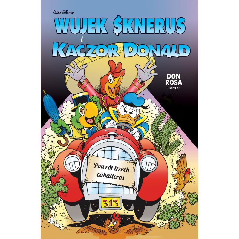 Kaczor Donald wcale nie chciał znaleźć się w rozpędzonym meksykańskim pociągu bez maszynisty ani toczyć nierównej walki z bandziorem zwanym Złotym Kapeluszem. Ale kiedy w grę wchodzi fortuna w srebrze, a u boku Donalda stoją nieustraszeni amigos José Carioca i Panchito, nierówna walka staje się równiejsza! Między innymi o tej walce opowiada tytułowy komiks o trzech caballeros, ale to dopiero początek! W „Meandrach architektury” Dziadek Be znajduje oryginalne plany skarbca Sknerusa, a w historii „Każda różdżka ma dwa końce” Magika de Czar rzuca bardzo groźne zaklęcie na umysły Sknerusa i Donalda. Te historietas excelentes („doskonałe komiksy” – tłumaczymy na wypadek, gdyś nie był caballero) wreszcie doczekały się wznowień w oszałamiających kolorach oraz z prawdziwym skarbcem komentarzy i zakulisowych ciekawostek opisanych przez samego Dona Rosę.
