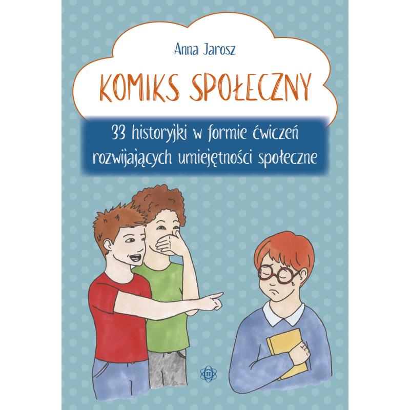 Każda z historyjek składa się z krótkiego opisu oraz zadań do wykonania. Dzieci muszą uzupełnić dialogi, wykazać się empatią, wpisując myśli lub uczucia bohaterów, a także odpowiedzieć na zadane pytania. Komiks społeczny to książka skierowana do dzieci w wieku 7–13 lat, ich terapeutów, nauczycieli oraz rodziców. Forma publikacji sprawdzi się podczas indywidualnej pracy z dzieckiem, a także w trakcie zajęć grupowych czy lekcji profilaktyczno-wychowawczych.