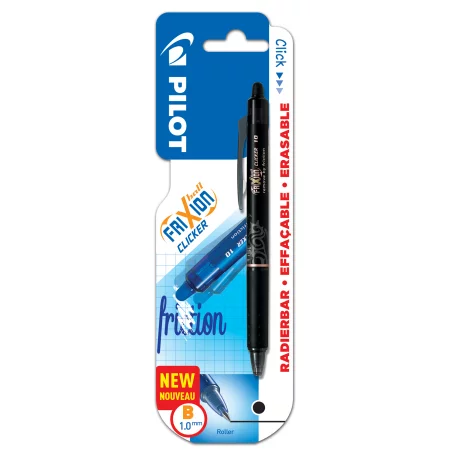 Czarne pióro kulkowe FriXion Clicker na blistrze, o rozmiarze końcówki piszącej 1.0.