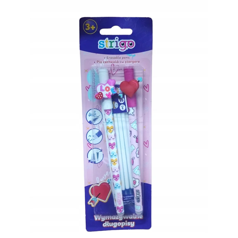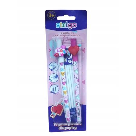STRIGO wymazywalne długopisy ze skuwkami , z niebieskimi wymiennymi wkładami.