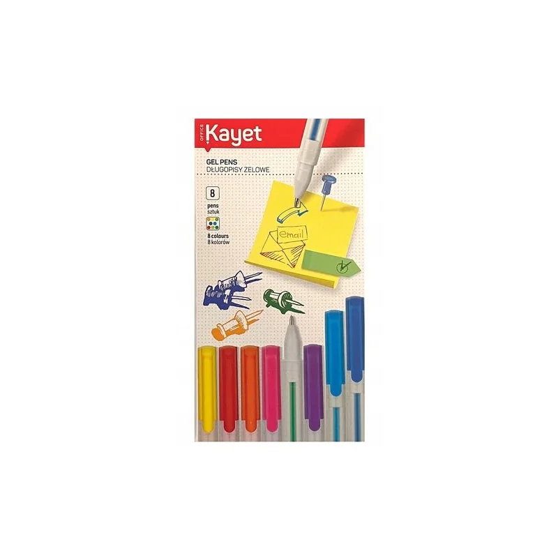 DŁUGOPIS ŻELOWY 8 KOLORÓW KAYET – ZESTAW DO PISANIA I KOLOROWANIA