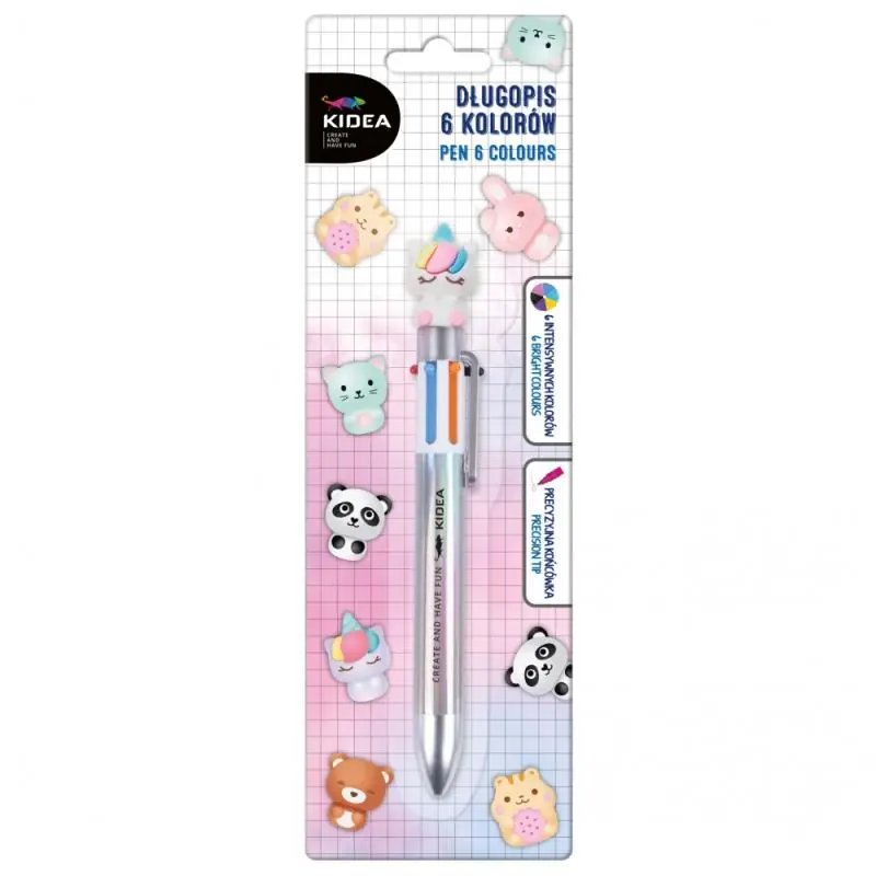 Derform Długopis z figurką 6 kolorów KIDEA DFA6KA to wyjątkowy długopis dziecięcy, który łączy funkcjonalność pisania z zabawnym designem. Dzięki sześciu kolorom atramentu i figurce na górze długopisu, staje się atrakcyjnym i edukacyjnym przyborem szkolnym, rozwijającym kreatywność i