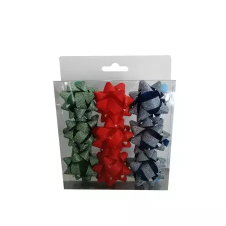 zestaw zawiera 9 rozetek, kolory: zielony, czerwony, złoty idealne wykończenie zapakowanego prezentu