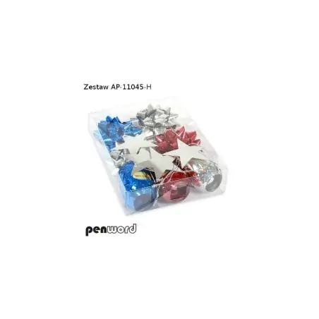 ZESTAW DO PREZENTÓW 4 ROZETY 3 KOKONY AP-11045-H PENWORD to wysokiej jakości zestaw dekoracyjny, który ułatwia pakowanie prezentów i upominków, zapewniając elegancki i efektowny wygląd każdej paczki.