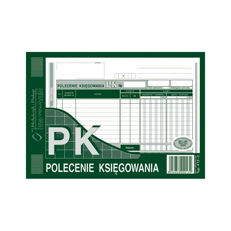 Michalczyk i Prokop Polecenie księgowania A5 poziom to praktyczny formularz biurowy przeznaczony do ewidencji i dokumentowania operacji księgowych. Ten druk księgowy A5 w układzie poziomym ułatwia przejrzyste sporządzanie zapisów finansowych w firmach, biurach rachunkowych oraz instytucjach.