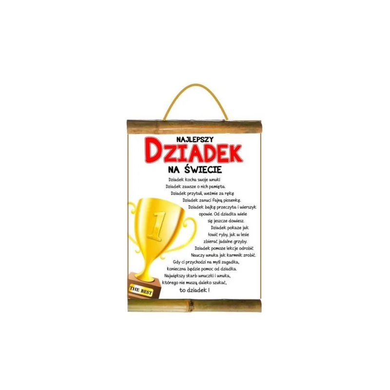 Dyplom w formacie A4, Z bambusową listewką i zawieszką z naturalnego sznurka.