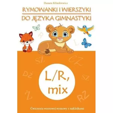 Rymowanki i wierszyki do języka gimnastyki" to zbiór zagadek, śmiesznych wierszyków, zgadywanek i rymowanek do utrwalania głosek L/R. Wszystkie teksty zawierają ćwiczoną głoskę i angażują dziecko do aktywnego powtarzania. Różnorodny materiał ćwiczeniowy nie tylko rozwija i bogaci słownictwo dzieci, zachęca do konstruowania rozbudowanych wypowiedzi ustnych, ale i uprzyjemnia czasem żmudną terapię logopedyczną.Dodatkowym atutem książki są kolorowanki i naklejki. Materiał może być wykorzystany przez rodziców (opiekunów) do pracy z dzieckiem w domu, nauczycieli przedszkoli do ćwiczeń wymowy, nauczycieli edukacji wczesnoszkolnej przy wprowadzaniu liter i ćwiczeń dykcyjnych oraz przez logopedów.