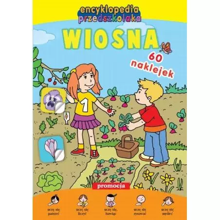 Ćwiczenia zawarte w książeczce przybliżą dzieciom tematykę dotyczącą wiosny, jednocześnie rozwijając ich podstawowe umiejętności: logiczne myślenie, sprawność manualną, koncentrację, spostrzegawczość oraz koordynację wzrokowo-ruchową. Motywacją do rozwiązywania wszystkich zadań będą ulubione zabawy maluchów m.in. wyszukiwanie i naklejanie nalepek, łączenie punktów, znajdowanie różniących się elementów, czy kolorowanie. Ciekawość poznawcza dzieci i ich twórczy entuzjazm sprawią, że książeczki z serii "Encyklopedia przedszkolaka" staną się obowiązkową pozycją w ich bilblioteczce.