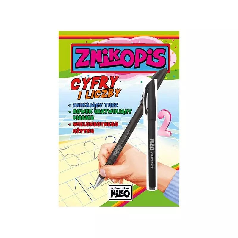 Seria ZNIKOPIS to książki wielokrotnego użytku, które ćwiczą koordynację wzrokowo-ruchową dzieci oraz wprowadzają je w świat literek i cyferek. Książki mają trójwymiarowe rowki, które pomagają w nabraniu właściwych nawyków potrzebnych podczas pisania. Znikający tusz pozwala na sięgnięcie po książki wiele razy lub podzielenie się nimi z rodzeństwem.